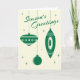 För en tid sedan uppdaterade jag denna retro julkort från några tillbaka år. Designen presenterar en trio av vintageprydnadar som inspireras av Christmasesen av min ungdom i en minsta färgintrig av grönt på blekkräm. Den inre hälsningen kan lämnas ensam, eller du kan skräddarsy den till din böjelse.