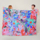 Retro Psychedelic Aqua Grönt and Orange Flowers Fleecefilt