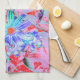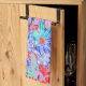 Retro Psychedelic Aqua Grönt and Orange Flowers Kökshandduk