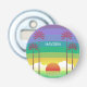 Modern colorful personalised bottle opener with retro style sunset and palm trees art.
