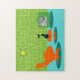 Det sägs att hundar har ägare och katter har att bemanna. Kattdjuret på detta Retro pussel för utrymmeålderkattunge kunde inte instämma mer! 60-talstilen, den minimalist konstdesignen presenterar en slät svart katt i ett modernt vardagsrum för mitt- århundrade. Det sofistikerade rummet presenterar prominently en grönt, stenvägg. Matta är aqua med krickan skuggar. Inredningen av rummet inkluderar en gult, sputnik den ljusa figuren, en orange vardagsrumstol med att matcha footstoolen, och en grön television med kanin gå i ax. Den lyckliga svart katten kan ses perched på footstoolen framme av televisionen. Dess favorit- show är på! På televisionskärmen kan vi se ett svartvitt, klassikertelevisionfamiljen som löser alla liv problem i en halvtimmeshow. Denna design är purrrfect, om vi gör något att säga så oss själva.
