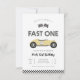 Kör över för att fira en speciell milstolpe med denna vintage racingbil inbjudan till första födelsedagen. Med en klassisk retro racingbil, rutiga flaggor och ett Fast One-tema är denna design perfekt för en högoktanfirande. Anpassa enkelt namn och evenemangsinformation för att skapa en snygg och minnesvärd inbjudan till ditt lilla barns stora dag.