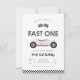 Kör över för att fira en speciell milstolpe med denna vintage racingbil inbjudan till första födelsedagen. Med en klassisk retro racingbil, rutiga flaggor och ett Fast One-tema är denna design perfekt för en högoktanfirande. Anpassa enkelt namn och evenemangsinformation för att skapa en snygg och minnesvärd inbjudan till din lilla enes stora dag.