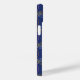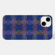 Ett fetstilt och dynamiskt geometriskt mönster med sammanlåsande flerfärgade koncentriska cirklar i skuggor av orange, gult, rosa och lavender på en djup marin blå bakgrund.