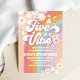 Fira ditt barns speciella dag med denna retro-regnbågs-födelsedagsinbjudan som har lekfulla pastellfärger, fredstecken, prästkragar, fjärilar och glada ansikten. Perfekt för en groovy 5-års födelsedagsfest, denna hippie-inspirerade design ger fred, kärlek och kul till din fest. Anpassa med festedetaljer för att skapa en unik souvenir som gästerna kommer att älska. Idealisk för barns födelsedagar, retro-teman fester och färgglada firanden.