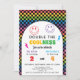 Double the Coolness Joint Birthday Invitation, Rainbow Checkerboard Kids Party Invite, Lightning Bolt Smiling Face, Retro Funky Birthday, Sibling Birthday Party
