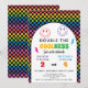 Celebrate twice the fun and twice the excitement with this vibrant and playful Double the Coolness Joint Birthday Invitation, perfect for siblings, twins, or best friends celebrating together! Featuring a bold rainbow checkerboard border, colorful lightning bolts, and trendy happy faces with a retro twist, this design brings a fun, funky, and modern vibe to your child’s birthday party. The cheerful color palette and trendy aesthetic make this invitation ideal for kids who love bright colors, playful graphics, and cool, high-energy celebrations.