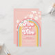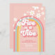 Fem är en Vibe! Retro inspirerade till 5:e födelsedagsinbjudan med 70:s stil typsnitt och färg, regnbåge och daisy i rosa