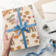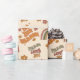 A groovy retro pattern espousing peace,love, and joy for the holiday season with rainbows and daisies in a vintage brown and green tone.