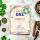 Retro Rainbow Pojkar St Patrick's 1-års födelsedagsinbjudan | Rutig bakgrund | Redigerbar mall för baby pojke