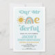 Retro Rainbow Vår nederländske inbjudan på födelsedagen Vår fantastiska inbjudan på första födelsedag till pojke som innehåller en sol, regnbåge och lite text i stil. Den här mr One-underbara första födelsedagsinbjudan har också en ljusblå bakgrund och ett foto på baksidan.