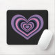 En stilfull musmattor med en djärv, retroinspirerad randig hjärtform i rött. Lägg till en färgklick och charm på din arbetsplats med denna roliga, minimalistiska hjärtkonst. Perfekt för hemmakontor, arbetsbord eller som en genomtänkt present till nära och kära.