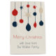 Cute retro party-presentväska med vintage 70 stil-dekorationer i rött, blått och elfenben ovanför din familj namn. Vackra nostalgiska helgdag.