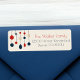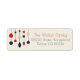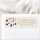 Returetiketter för jullkort med vintage 70 stil-dekorationer i rött, blått och elfenben ovanför din familj namn. Vackra nostalgiska märken för helgdag.