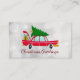 Affärskort med en coola gammal röd bil som bär en grönt jultoma gräs träd vid tak och en present som är inkapslad i den öppna bagageutrymmet. Har en underbar retro 50 stil flair. Sätt på en silver-bänkbakgrund med snyggtens stjärnor spridda runt.