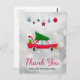 Retro Red Car som transporterar en Julgran Tack Vykort