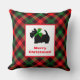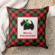 Inget mer än en svart, svart skotsk hund som grät ut i en julscarf. Denna efterpläterade kudde i rött, grönt och svart är en skotsk skräckare med budskapet God jul. Finns i tre storlekar och flera olika tyger, inklusive utomhustyg om du vill hålla den på framluckan.