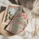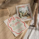Retro Red Grönt Hand plockade Quirky Bow jul Julkort