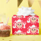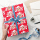 Gör julglädjen papper med det här färgstarka omslaget. Den har en röd bakgrund med nyans, vit med en vit Jultomten-panel mönster.