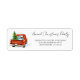 Få redo att fira säsongen med lite nostalgia! Våra anpassade party-returetiketter i jul har en vintage röd lastbil som bär Julgran. Den här klassiska, roliga designen anger perfektens ton för en mysigt helgdag som samlas med vänner och familj. Anpassa texten med dina party-detaljer och få alla upphetsade för ett festligt firande som känner sig både tidlöst och varmt.