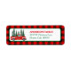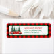 En vattenfärgsbild av en röd reflektor lastbil framför en grov av evergreen träd är den som finns på Helgdag returadressetikett. Texten i rött och grönt har ditt namn och adress på en vit rektangel som placeras på en buffelklädd bakgrund. Perfekt för julkort och korrespondens, men kan lätt användas under hela vintersäsongen.