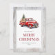 Rustiskt vattenfärgskort God jul med ett gammalt rött lastbil som bär Julgran och gåvor inuti ett orustiskt trä ram. Anpassa enkelt det här gamla helgdag-kortet från lastbil med din familj namn och året.