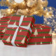 Modern, retro, röd och grönt julomslutning papper med söt, unik gräs träd mönster.