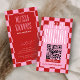 Trendy retro QR Code business card with girly pink & red checkered background and modern fonts. These groovy social media business cards include space for your name or logo, scannable QR code and contact details. This retro design can suit any professional such as nails tech, aesthetician, makeup artist and more! Easily promote your instagram, tiktok, facebook or any other social media with these scannable QR code business cards.