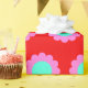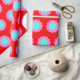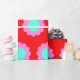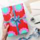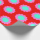 Den pappra inslagningen är livfull och lekfull och har en roligt mönster av mod 60-talets boho som blåser blommor i rosa och turkos på röd bakgrund.