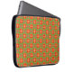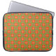 En Neoprene-Sleeve i chicen som skyddar din bärbara dator (upp till 15 tum) med mönster av stiliserat Scarlet, Bright Rosa och Orange poppies och Polka dots på Gröntens bakgrund. Del av insamlingen "Poppy Fält".