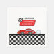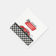 Den här öga-fångsten av pappra servetter blandar vintage med lekfullt stollig, med en vacker illustrerad reflexbil från tävling i skuggor av pulserande rött, svart och vitt.
