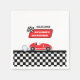 Den här öga-fångsten av pappra servetter blandar vintage med lekfullt stollig, med en vacker illustrerad reflexbil från tävling i skuggor av pulserande rött, svart och vitt.