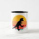 A fearsome T-Rex silhouetted against a vibrant retro sunset, ready to roar.