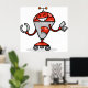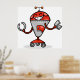 Retro Robot Tecknad Roligt Red and Silver AI Bot Poster
