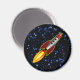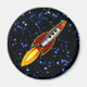 En raketraket från stil på 1940/50 är på väg in i omloppsbana, eller kanske till Måne eller Mars. Kanske i tid för att njuta av eftermiddagsteet med martianerna. :