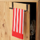 En röd och för godisrand för vit retro för mönster kökshandduk med röda gränser.