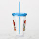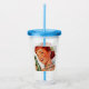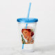 Retro rött head innehav en flaska av sodavatten med rolig slogan.