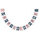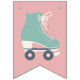 Roligt och söt rosa och mörk teal blue bunting flaggor för rullskridskor med födelsedagsfesten "Grattis på födelsedagen" i enkel modern typografi och en återinspirerad illustration av rullskridskor.