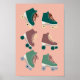 Retro Rollerskates Grönt Dusty Rosa Groovy Coola Poster