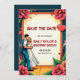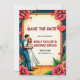 Den här eleganten, tecknad bok-stil, sparar du datumet då inbjudan är perfekt för ett modernt bröllop. Den reflekterande utformningen har en illustration av vintagens brud och groom och svartfärgad kalligrafi på en tecknad med bok som tema.