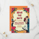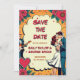 Den här eleganten, tecknad bok-stil, sparar du datumet då inbjudan är perfekt för ett modernt bröllop. Den reflekterande utformningen har en illustration av vintagens brud och groom och svartfärgad kalligrafi på en tecknad med bok som tema.