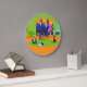 Den här Retro Romantic Evening Couple Round Wall Clock ser ut som en scen ur en romantisk komedi från 1960. Den minimalistiska utformningen har ett attraktivt par av tecknad i vardagsrummet i en modern stadshus i mitten av århundradet. Rummet har en framträdande grönt, en stenvägg med ett fönster mellan golv och takfönster i en vy. Genom fönstret kan vi se den blå silhuetten från en stor stadskylin. Ett halvmåne måne syns bara i orangen himlar av solnedgången. Inredningarna i rummet omfattar en grönt, en sittande stol med fotavföring, en gult, en ljusfixtur för sputnik och en turkos, en konformad kamera, kompletta med brand. I mitten av orangens golv finns det en runda, grönt Shag matta. En portabel, turkos och svart rekordspelare placeras på matta. Bredvid spelaren kan man se en vinylpost som visar ett kitschybäcke. På matta finns det också en slimmad, svart katt som bär en tealkrage. Kattdjuret i finare ligger sitta framför ett martinistiskt glas. Vi har ett mycket sofistikerat par. Det finns en suave man som bär blå kostym, ljusblå skjorta och röd slips. Den höga, mörk och stiliga mannen njuter av en elegant blondinkvinna. Den vackra dam har en shock rosa med en formpassande bodice och flammande kjolt. De har vardera ett kristallmartiniserat glas med flytande oliver. Skål! Här är perfektens kväll hemma!