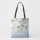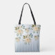 Romantisk design väska i vintage stil, med ränder på en elegant dammig blå gradientbakgrund med fina blommor. Etiketten är en separat bild och kan skalas eller raderas om du inte behöver den. Du kan också lägga till en anpassad rektangulär bakgrundsform för din text. Perfekt för en brud eller någon som är relaterad till paret, liksom för en romantisk själ.