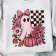 Denna #coquetteghost-design blandar #spookyseason med delikat charm och presenterar en söt spökfigur med en rosett på huvudet, omgiven av #pinkflorals, höstlöv och en pastelljus pumpa. Den #retrohalloween-känslan lyser igenom i den mjuka färgpaletten och de slitna texturerna, vilket ger den en perfekt balans mellan kuslig och söt.