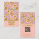 Retro Rosa Grönt QR Code Groovy Blommigt Girly Visitkort