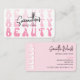 Modern skönhetsalon eller affärskort med typsnitt och rosa bakgrund. Den nya typsnittsdesignen lyder "skönhet" och "hej" och lägger till ett verkligen till den här telefonkortet, perfekt för din sminkstudio, lash salon, nagel spa eller något annat företag. Du kan anpassa det här feminina affärskortet med din logotyp och affärsinformation så att det blir ditt eget.
