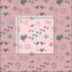 Retro-rosa och grått mönster av fåglar, dammar, fotsteg, blommor, hjärta och fjäril