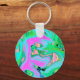 Retro Rosa och Light Blue Liquid Art på Hydrangea Nyckelring