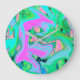 Retro Rosa och Light Blue Liquid Art på Hydrangea Stor Klocka