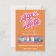 Fira din kommande vigsel med vårt livfulla Retro Rosa och Orange Bröllop Födelsedags kortsparande datum! Denna iögonfallande design kombinerar den tidlösa charmen hos retroestetik med ett modernt twist och skapar en perfekt blandning av nostalgi och samtida stil. De fantastiska nyanserna av rosa och orange ger en glad och energisk stämning till din "spara datum"-annons. Anpassa ditt kort med lätthet! Lägg till din egen text för att dela viktig information och ladda upp dina favoritfoton för att göra det verkligen unikt.